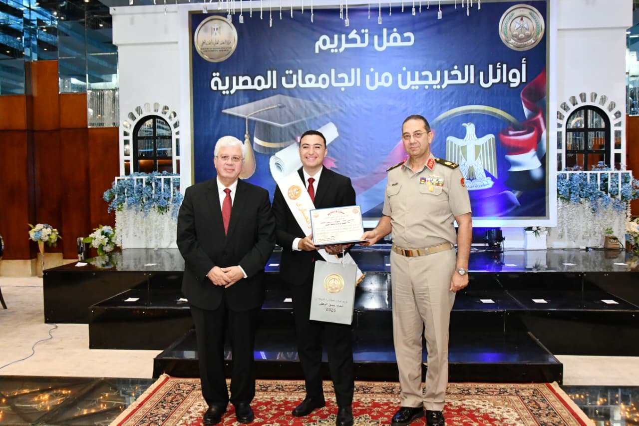 فى إطار حرص القوات المسلحة على تعزيز أوجه التعاون مع كافة الوزارات والمؤسسات بالدولة إيماناً بأهمية التكامل فى الدور المجتمعى والتنسيق المشترك الذى يعود بالنفع على الوطن بكافة المجالات ، نظمت قوات الدفاع الشعبى والعسكرى بالتعاون مع وزارة التعليم العالى والبحث العلمى إحتفالية لتكريم أوائل الطلبة من خريجى الجامعات المصرية للعام الدراسى الماضى تقديراً لتميزهم العلمى وحرصهم على التفوق خلال مختلف المراحل الدراسية , وذلك بحضور الدكتور أيمن عاشور وزير التعليم العالى والبحث العلمى .
