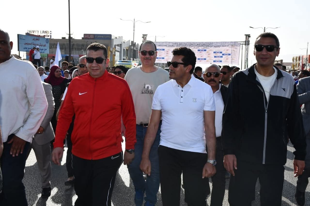 وزير الشباب والرياضة ومحافظ السويس يفتتحان مسيرة مهرجان يوم المشي العالمي