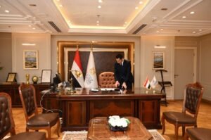 اللقطات الأولى لوصول الكابتن جوهر نبيل وزير الشباب والرياضة إلى مكتبه بمقر الوزارة في العاصمة الجديدة. حيث ظهر وزير الشباب والرياضة من داخل مكتبه في أول يوم عمل له كوزير للشباب والرياضة خلفا للدكتور أشرف صبحي وزير الشباب والرياضة السابق .##