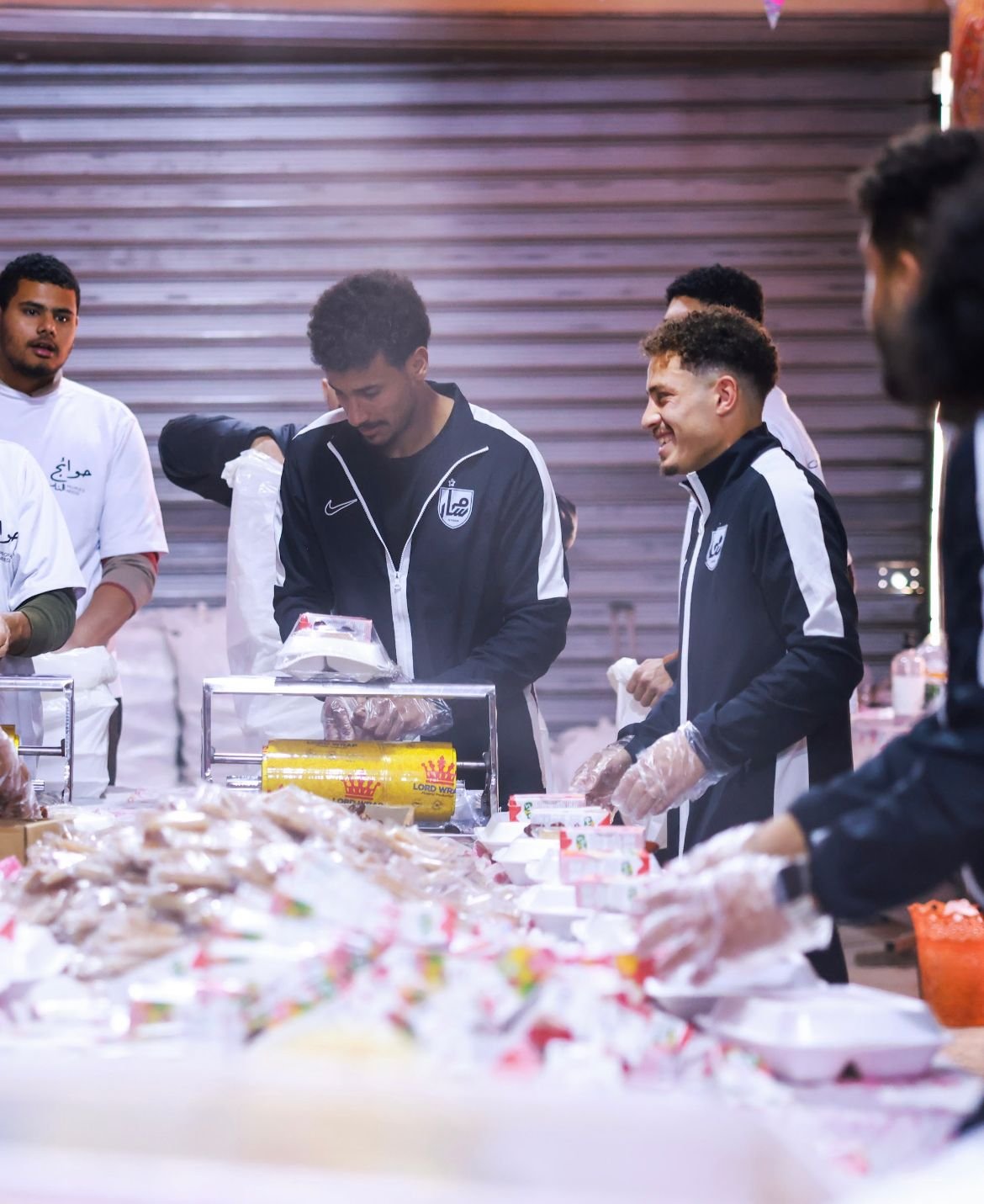 وتواجد لاعبو الفريق وجهازهم الفني، في موقع تجهيز الوجبات، حيث ساهموا في تعبئة وتوزيع وجبات الإفطار لمستحقيها، في إطار المبادرات المجتمعية الداعمة للأسر المحتاجة خلال الشهر الكريم.