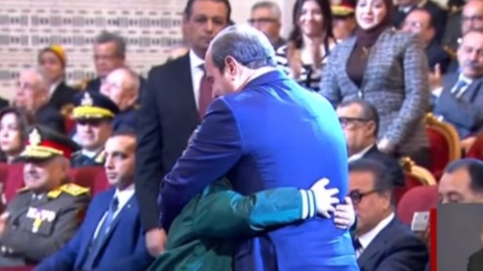 صعد رامي ابن الشهيد العقيد رامي هلال إلى مسرح احتفالية عيد الشرطة الـ 74 أمام الرئيس السيسي، قائلا “أنا اسمي رامي علي ابن الشهيد العقيد رامي هلال وأنا عايز اطلع ضابط زي أبويا وممكن أسلم على حضرتك”. ليرد الرئيس السيسي على ابن الشهيد العقيد رامي هلال، “أنا اللي بحبك يا حبيبي وانا أسلم واتشرف بيك، ليقوم الرئيس السيسي باحتضانه. ويشهد…