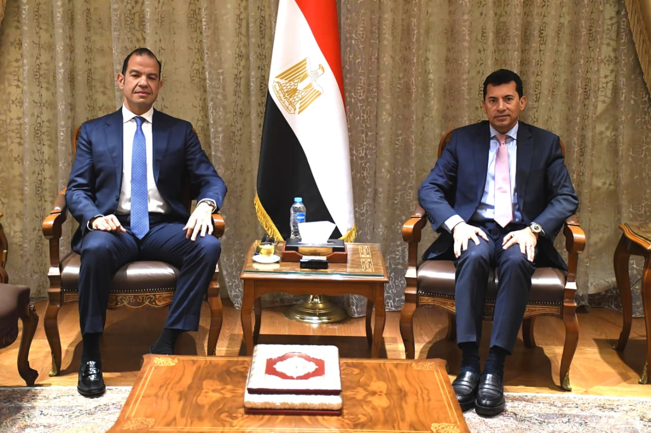وزير الشباب والرياضة يبحث مع رئيس شركة استادات ونائب رئيس المتحدة للرياضة لدعم الاتحادات والتعاون المشترك