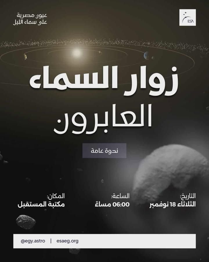 تنظم مكتبة المستقبل ، إحدى المنصات الثقافية بجمعية مصر الجديدة ، فى الساعة السادسة من مساء بعد غد الثلاثاء ، ندوة فلكية بعنوان ” زُوّار السماء العابرون” بالتعاون مع الجمعية المصرية لعلوم الفلك ، يحاضر فيها المهندس عصام جودة ، برعاية الدكتورة سهام الجوهرى رئيس مجلس إدارة جمعية مصر الجديدة وأعضاء المجلس. تهدف الفعالية إلى التعرف على طبيعة “زوار السماء”…